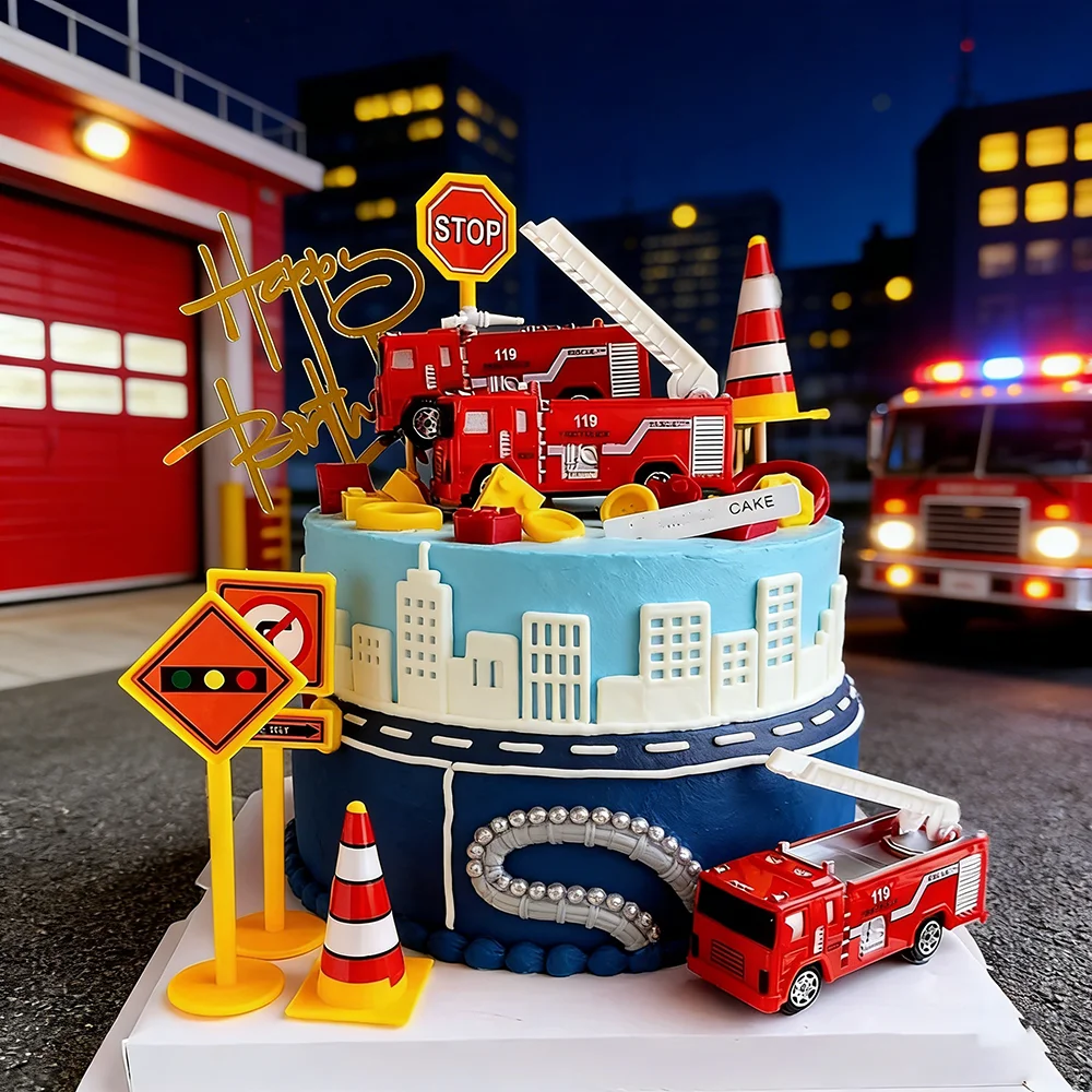 Brandweerwagen Verjaardagsthema Taartdecoraties Brandbestrijding Held Auto Verjaardagstaarttopper voor Jongens Kinderen Gelukkige 1e Verjaardag Feestcadeau