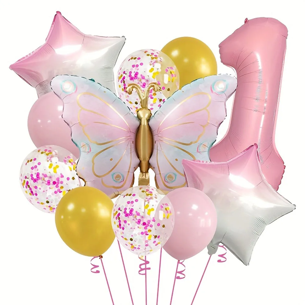1Set 32in Roze Nummer Ballonnen Retro Geel Pailletten Ballonnen Gradiënt Vlinder Ster Decor Voor Meisjes Verjaardagsfeestje Decor Geschenken