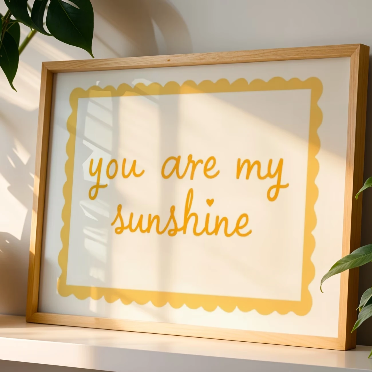 Moderne 'You Are My Sunshine'-quote wanddecoratie, gele schelprandprint, canvas posterprint voor kinderkamer & slaapkamer huisdecoratie