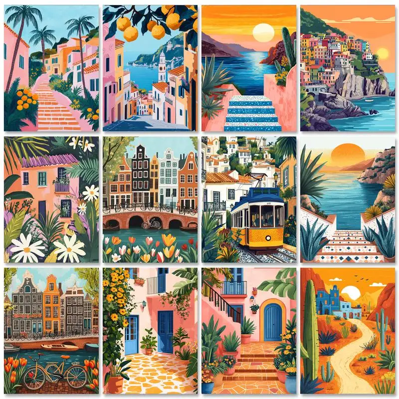 Moderne Sunset Series gele canvas wandkunstposters, frameloze abstracte canvas schilderij voor woonkamer en slaapkamerdecoratie
