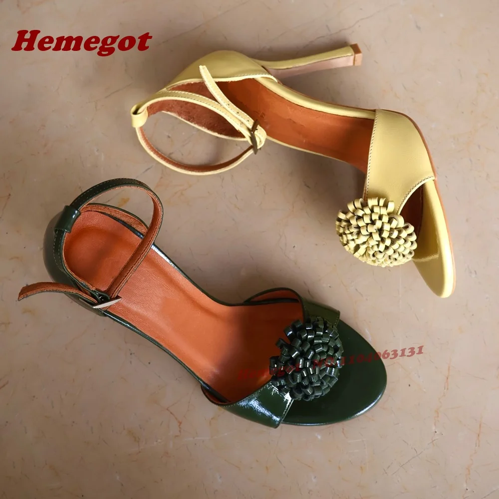 Bloemgele gesp sandalen open teen enkelband stiletto hakken dames sandalen zomer zijdelingse lucht luxe feest schoenen glanzend 2026