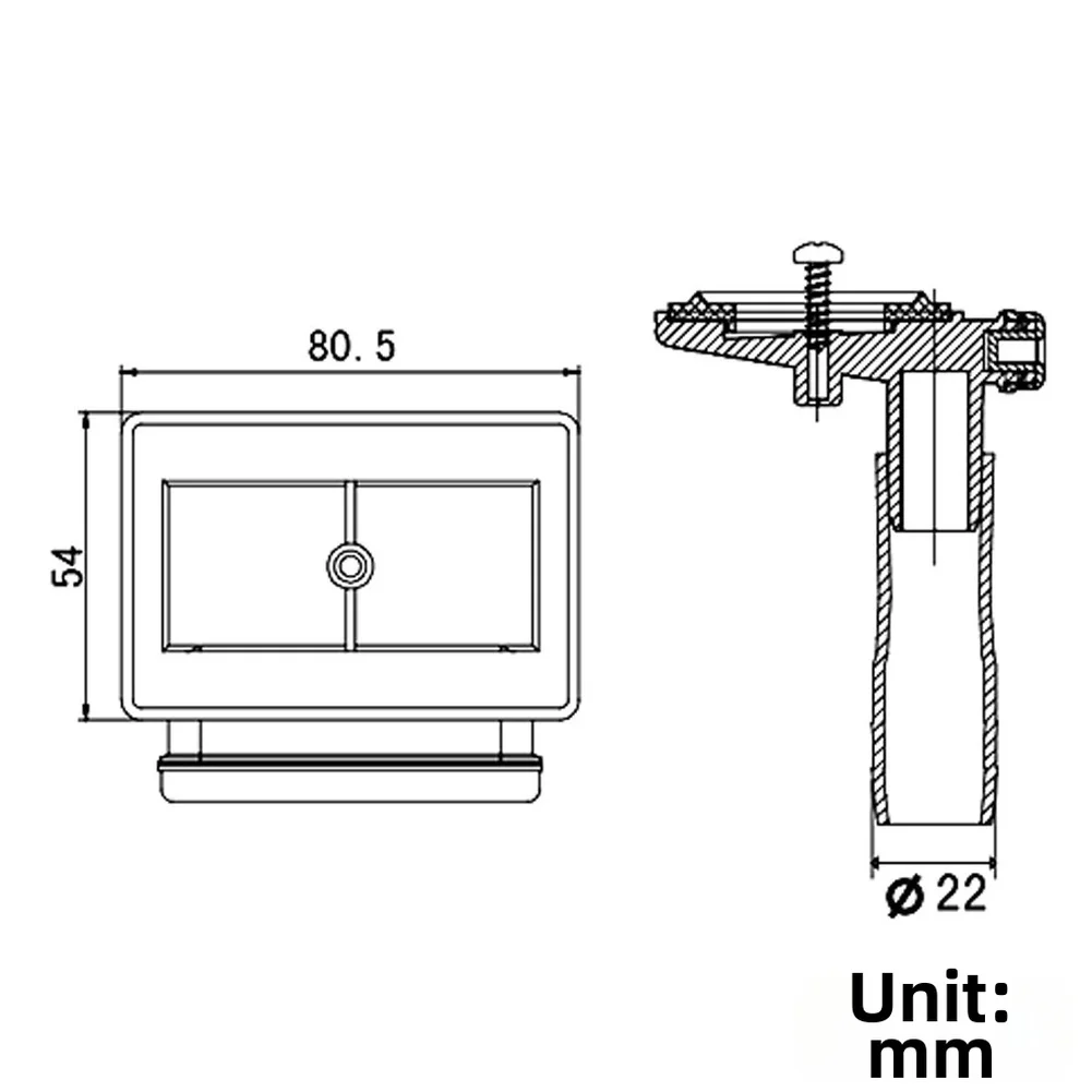 Overloopkop voor keukenkraan, vierkante stijl, geschikt voor 21 mm overloopbuis, 250 mm buislengte, constructie van PP-materiaal