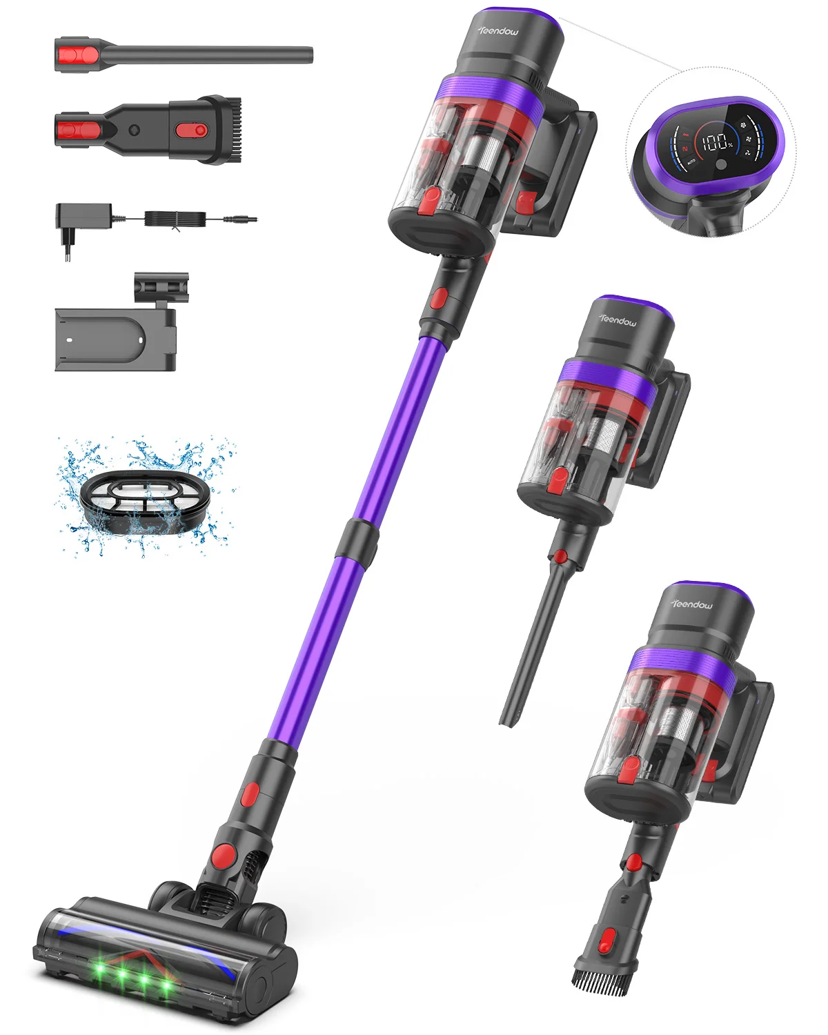 Teendow V20 Sterke hand- en steelstofzuiger, 45KPA krachtige zuigkracht, 500W borstelloze motor, stofzuiger