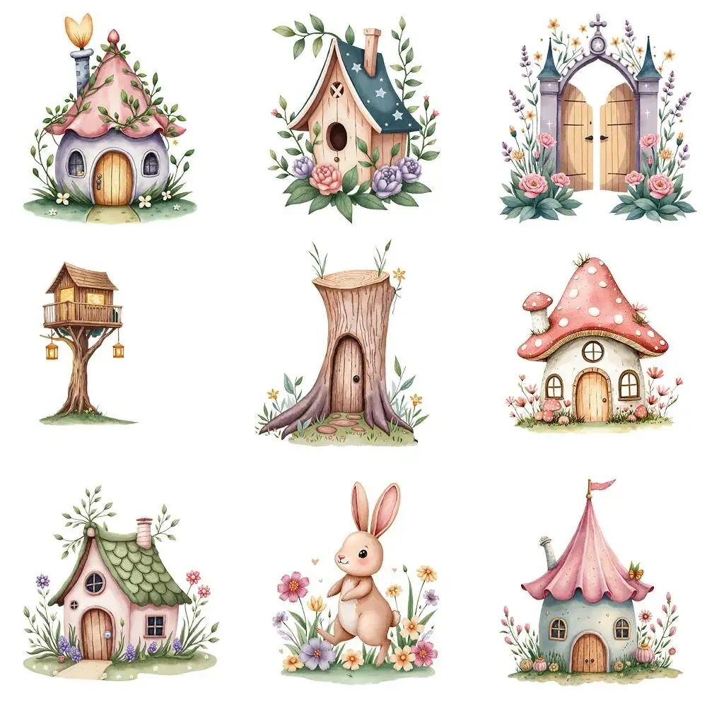 15 cm Kids Leuke Sprookjes Log Cabine Ijzer Op Warmteoverdracht Sticker Diy T-shirt DTF Ijzer Op Transfer Patches voor Kinderkleding