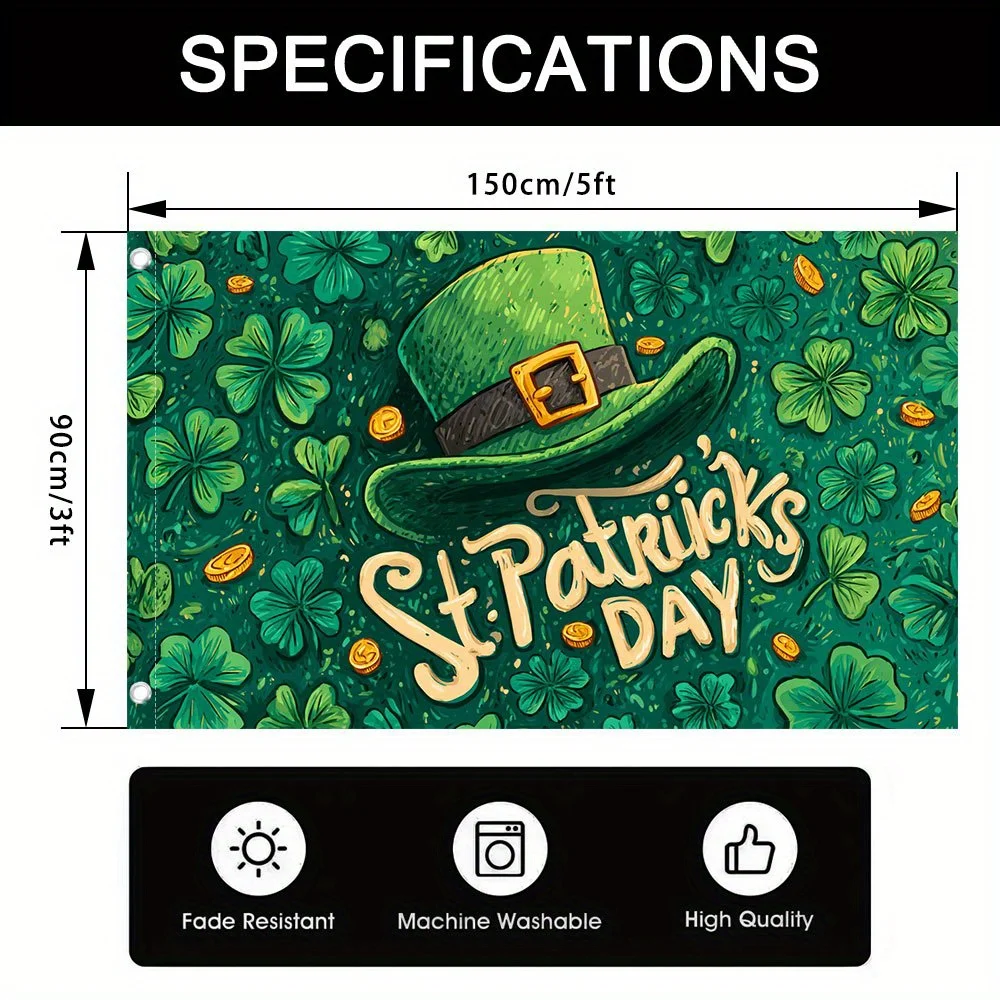 St Patricks Day Tuinvlag Shamrock Leprechaun Hat Outdoor Yard Decor Polyester Banner
