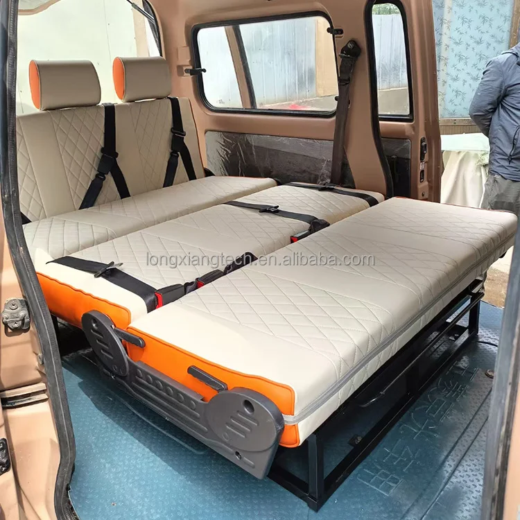 Driepersoons comfortabele lederen opklapbare camperbank, om te bouwen van autostoelen tot bed.