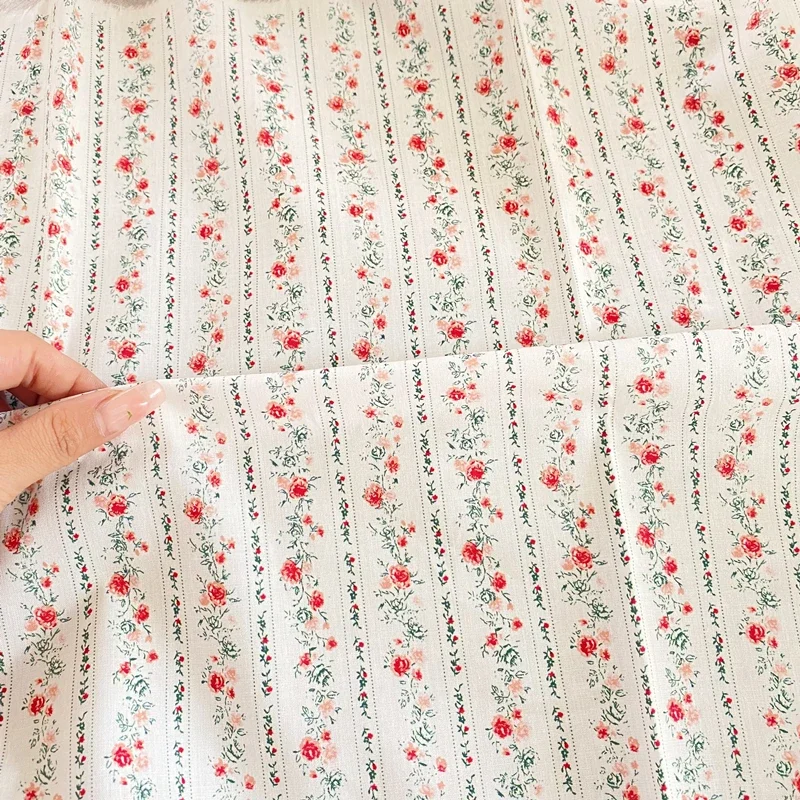 145x50cm puur katoenen stof gestreepte bloemstengel verse cartoon stof handgemaakte doe-het-zelf kleding rok shirt naaidoek