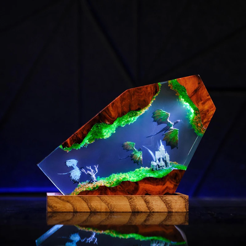 Draakfiguur Tafel Harslamp Magische Wereld Scène Kleuren Nachtlampje Aangepaste Creatieve Kunst Desktop Home Decor USB Opladen