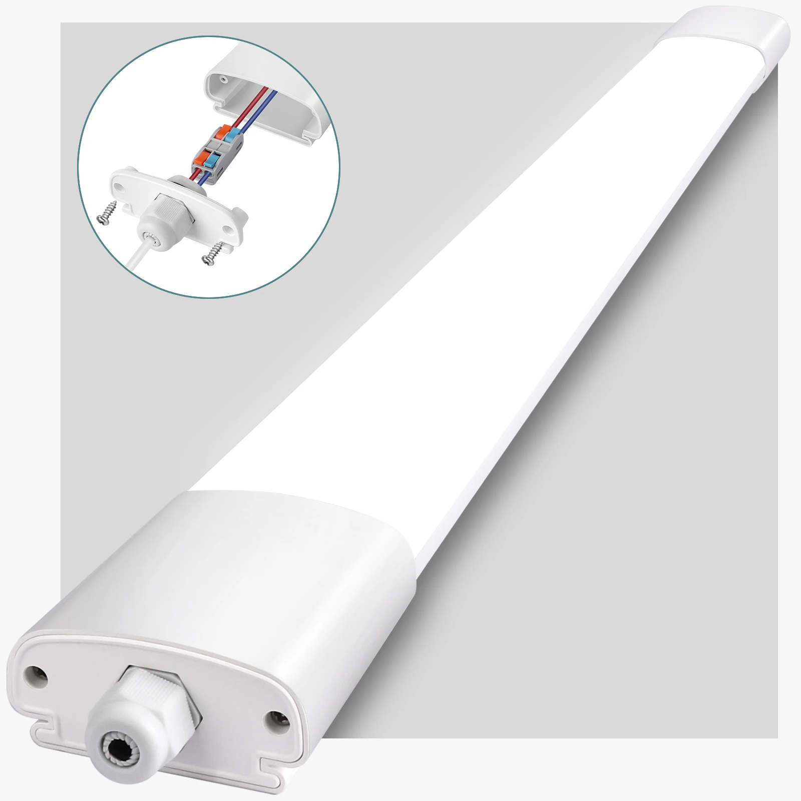150 cm koppelbare LED-natte kamerlamp, 45 W 5000 lm, 4000 K neutraal wit, IP66 plafondbuislamp, LED-plafondlamp voor keuken, badkamer, kelder, werkplaats, garage, kantoor, magazijn