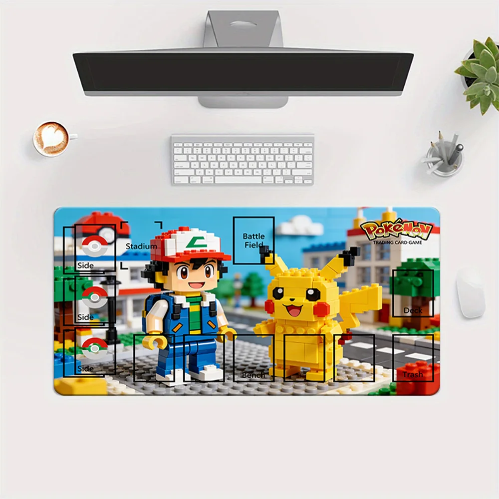 Pokemon Ash & Pikachu Lego Style TCG speelmat met volledige kaartzonen Gaming muismat bureaumat