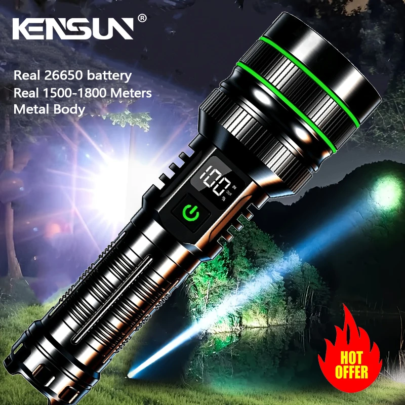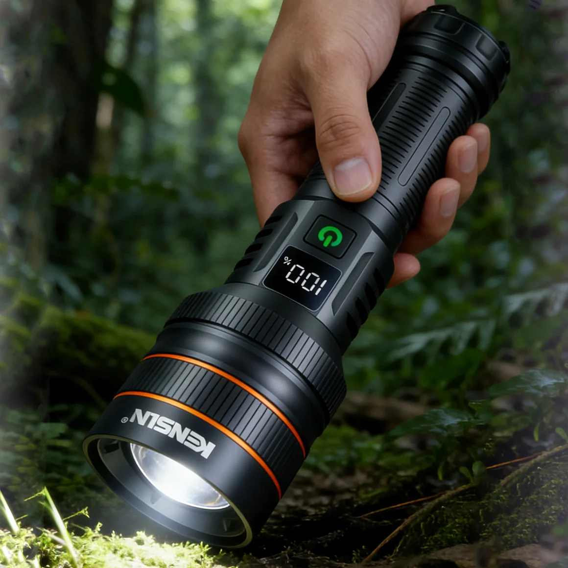 KENSUN Meest krachtige oplaadbare LED-zaklamp Tactische zaklamp voor vissen Jagen Type-c Zaklamp Lange afstand 6000M