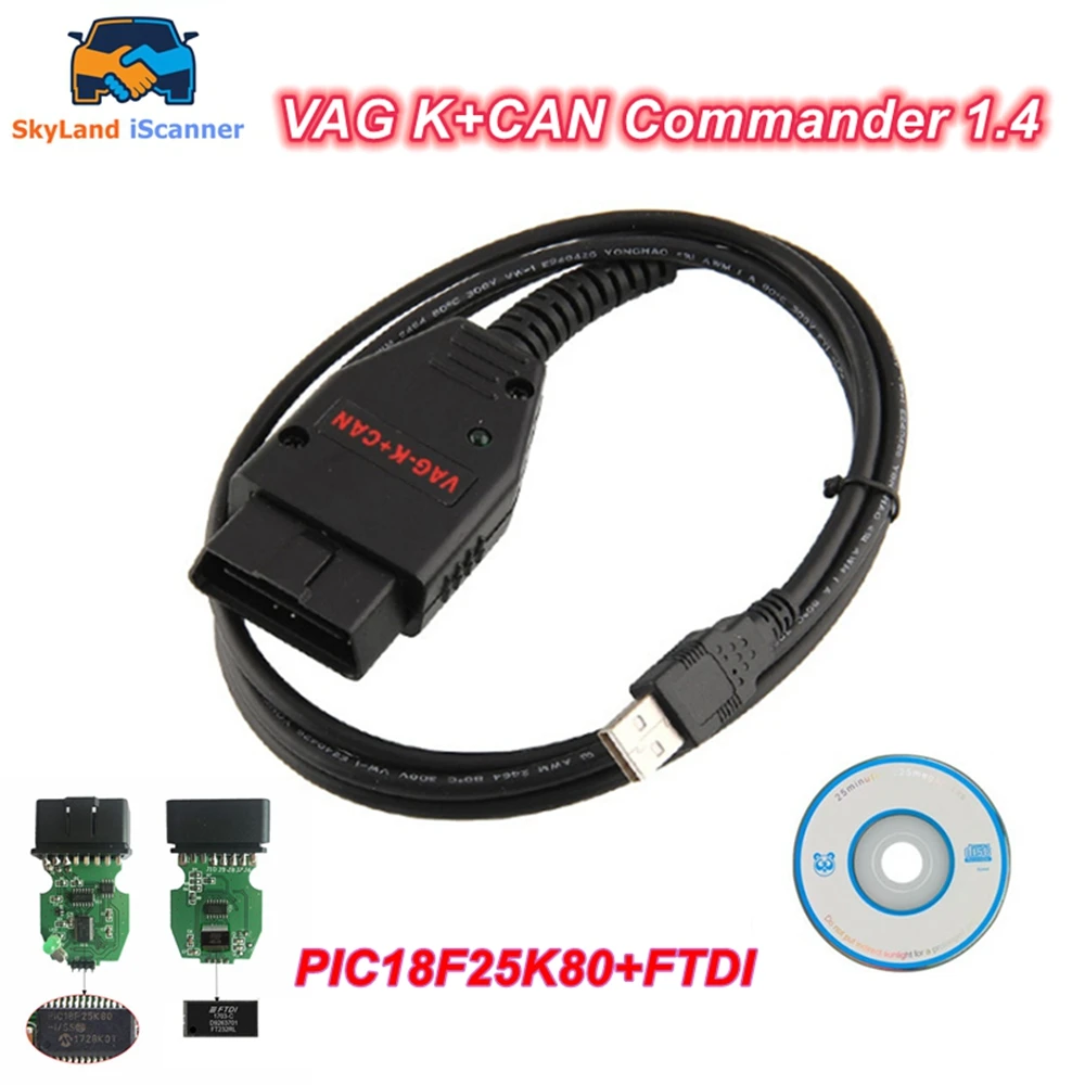 Nieuwe VAG K CAN Commander 1.4 FTDI PIC18F25K80 K+CAN 1.4 OBD OBD2 Auto Diagnose Gereedschap Interface COM K-line Kabel voor VW/AUDI