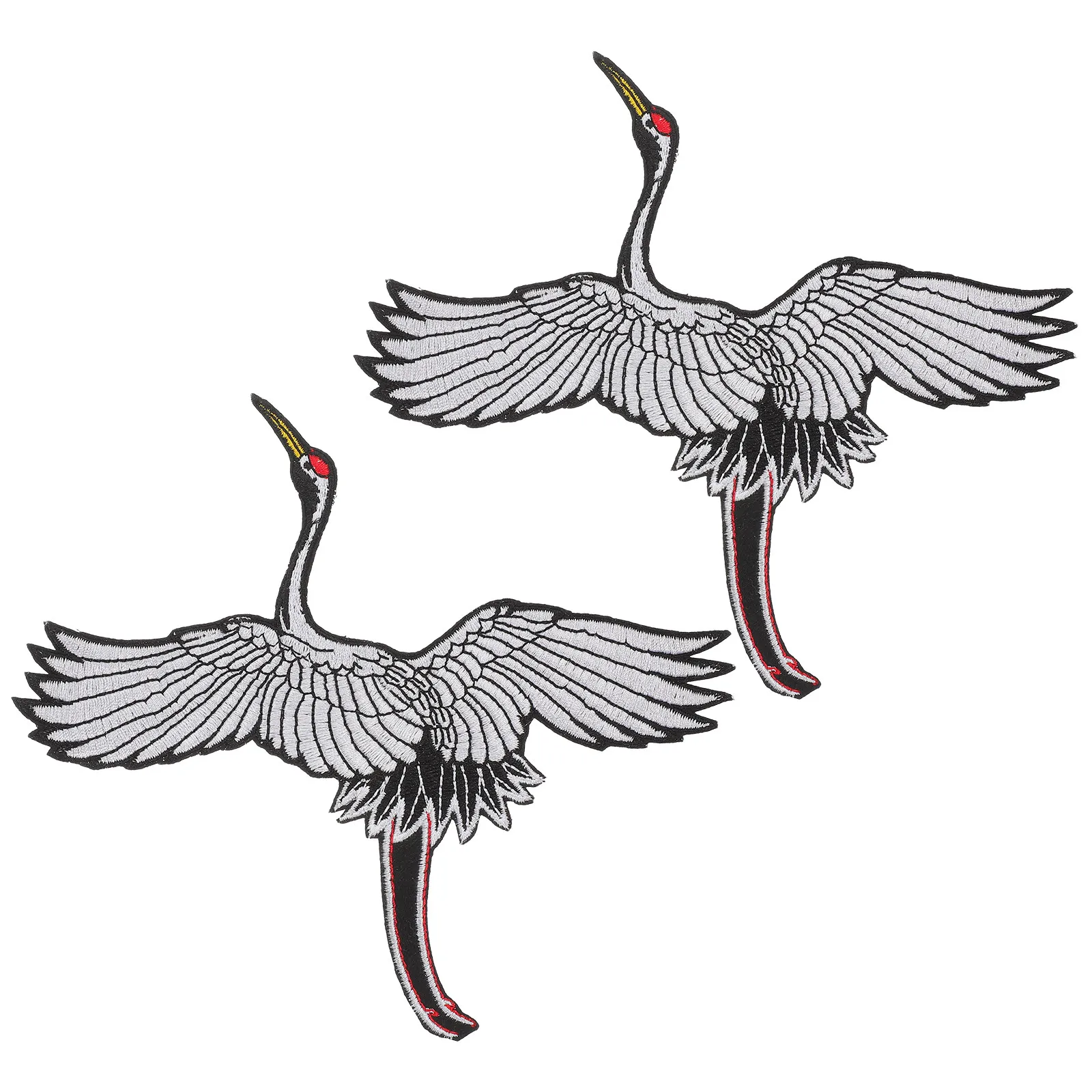 Geborduurde applicaties van een roodgekroonde kraanvogel naaien op kleding voor decoratie