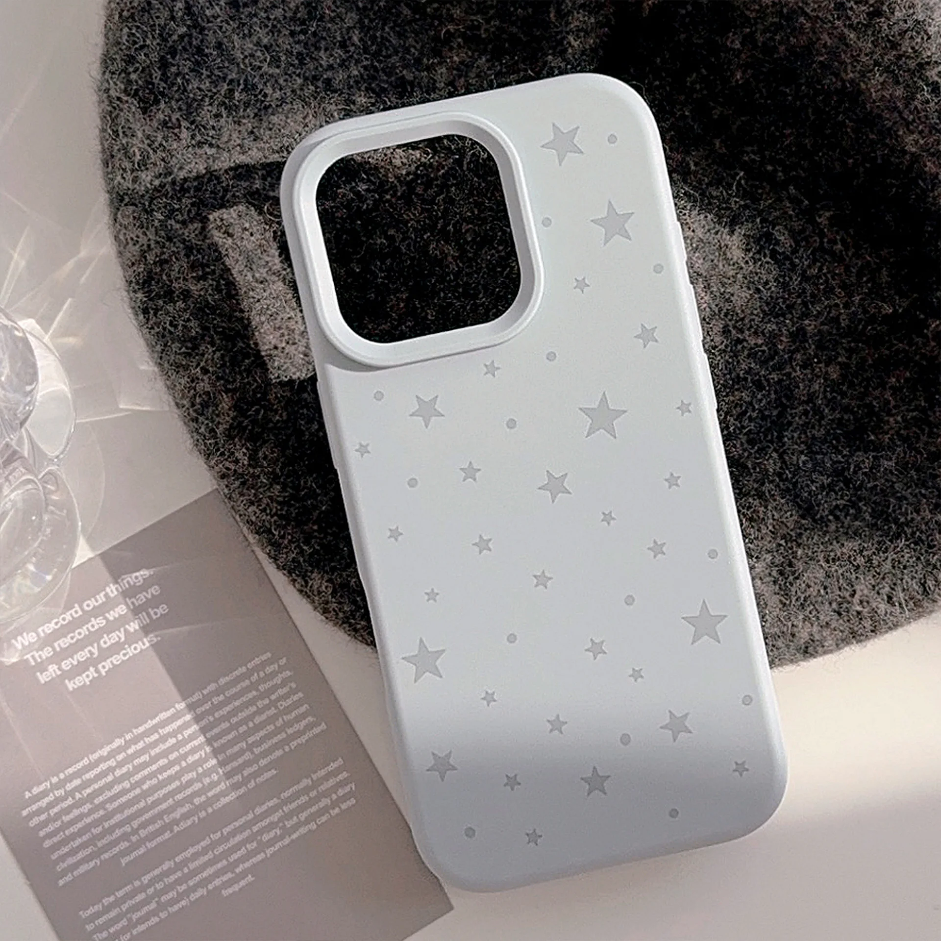 Koreaanse Minimalistische Volledig Grijze Sterrenpatroon Telefoonhoesje voor iPhone 17 16 15 14 13 12 Pro Max Stootbestendige Beschermende Zachte Cover