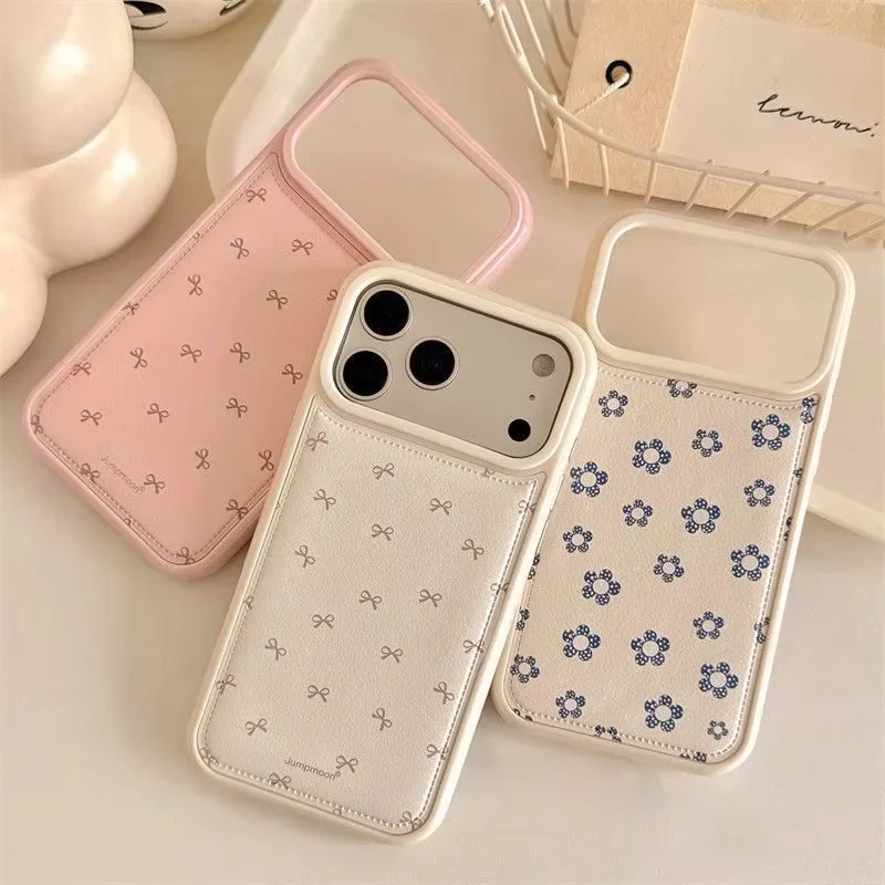 Volledig scherm Frisse Mode Schattige Simpele Blauwe Bloemige Strik Telefoonhoesje voor iPhone 17 AIR 16 15 14 13 12 11 PRO MAX PLUS Cover