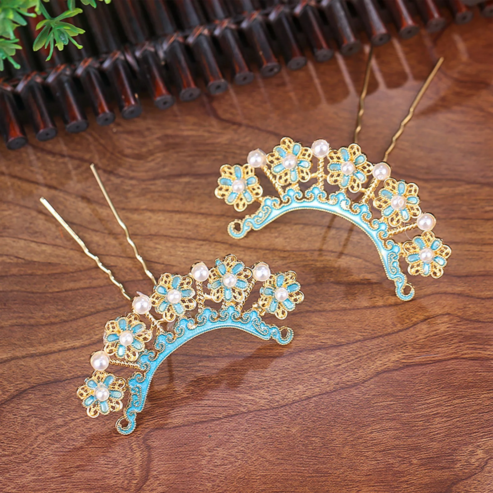 Traditionele emaille haarspelden met imitatieparels voor Hanfu-cosplay, haaraccessoires in Chinese stijl voor vrouwenfestivals