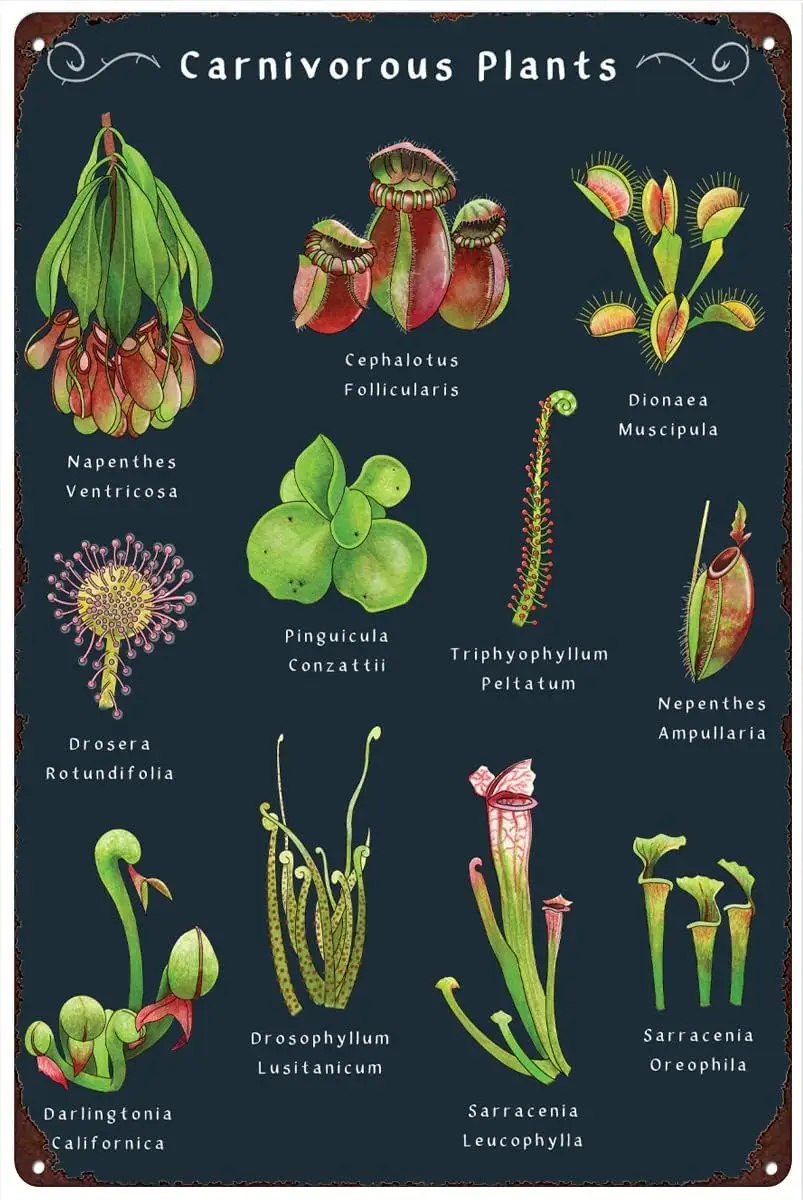 Retro metalen blikken borden vleesetende planten poster insecten etende planten muurkunst botanische muurkunst decor vleesetende plantenliefhebber
