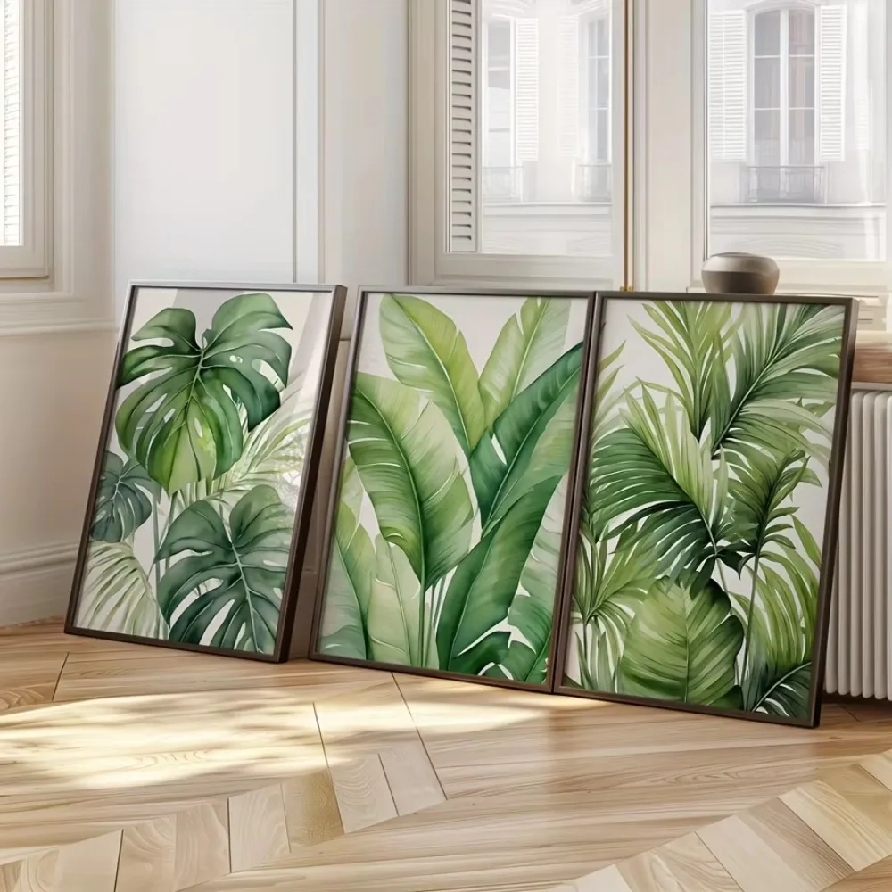 1/3PCS frameloos, tropische aquarel bladprint, plant wall art, banaan, monstera, palmblad poster, woonkamer decoratie,