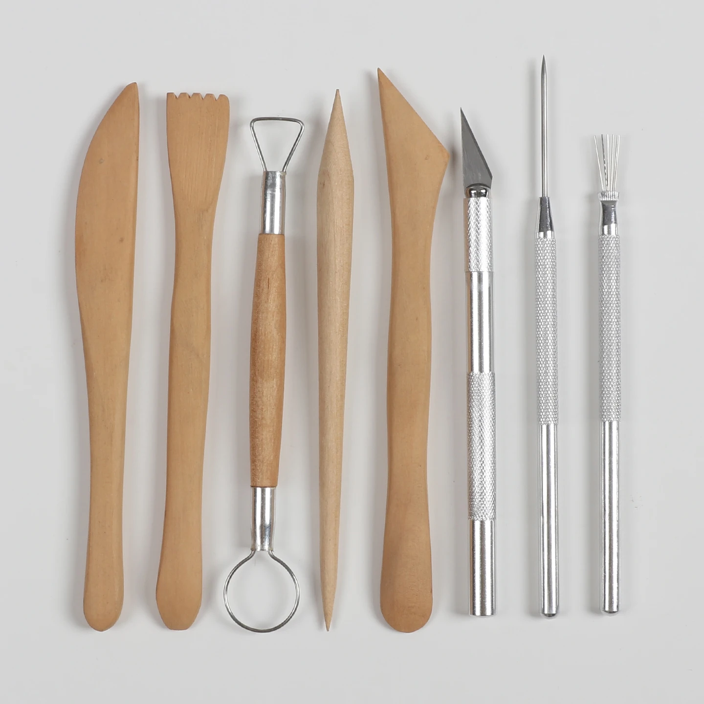 3-delige set van roestvrijstalen polymeerklei-sculptuurborstels voor het snijden, vormgeven, schrapen, modelleren, texturen maken, doe-het-zelf pottenbakkersgereedschap