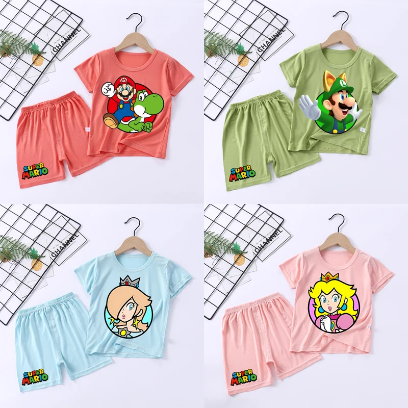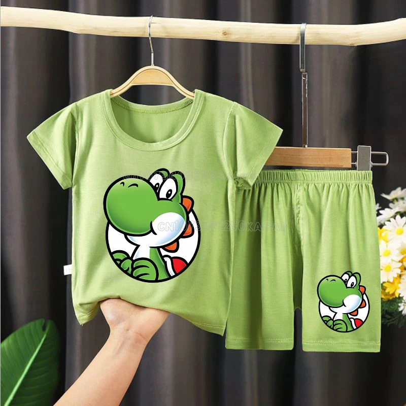 Kawaii Pyjama Shorts Set Jongens Meisjes Yoshi Luigi Nachtkleding Broek Kinderen Zomer Thuis Kleding Kinderen Korte Mouw Broek Cadeau