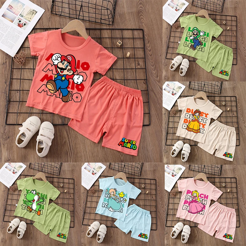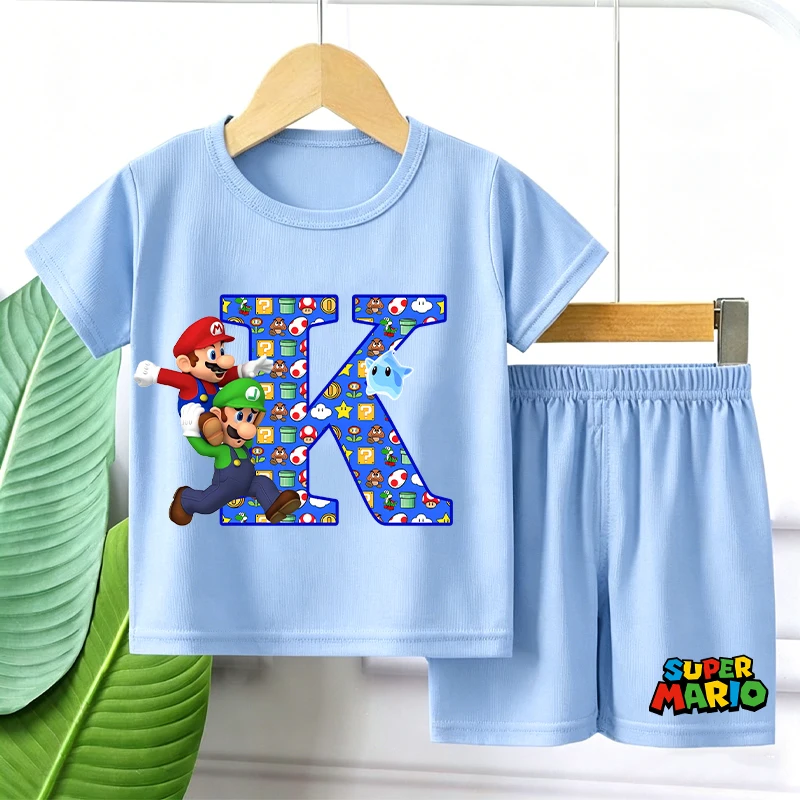Letter A-Z Pyjama Shorts Set Jongens Zomer Thuis Kleding Kinderen Kawaii Yoshi Luigi Nachtkleding Broek Kinderen T-shirt Broek Cadeau