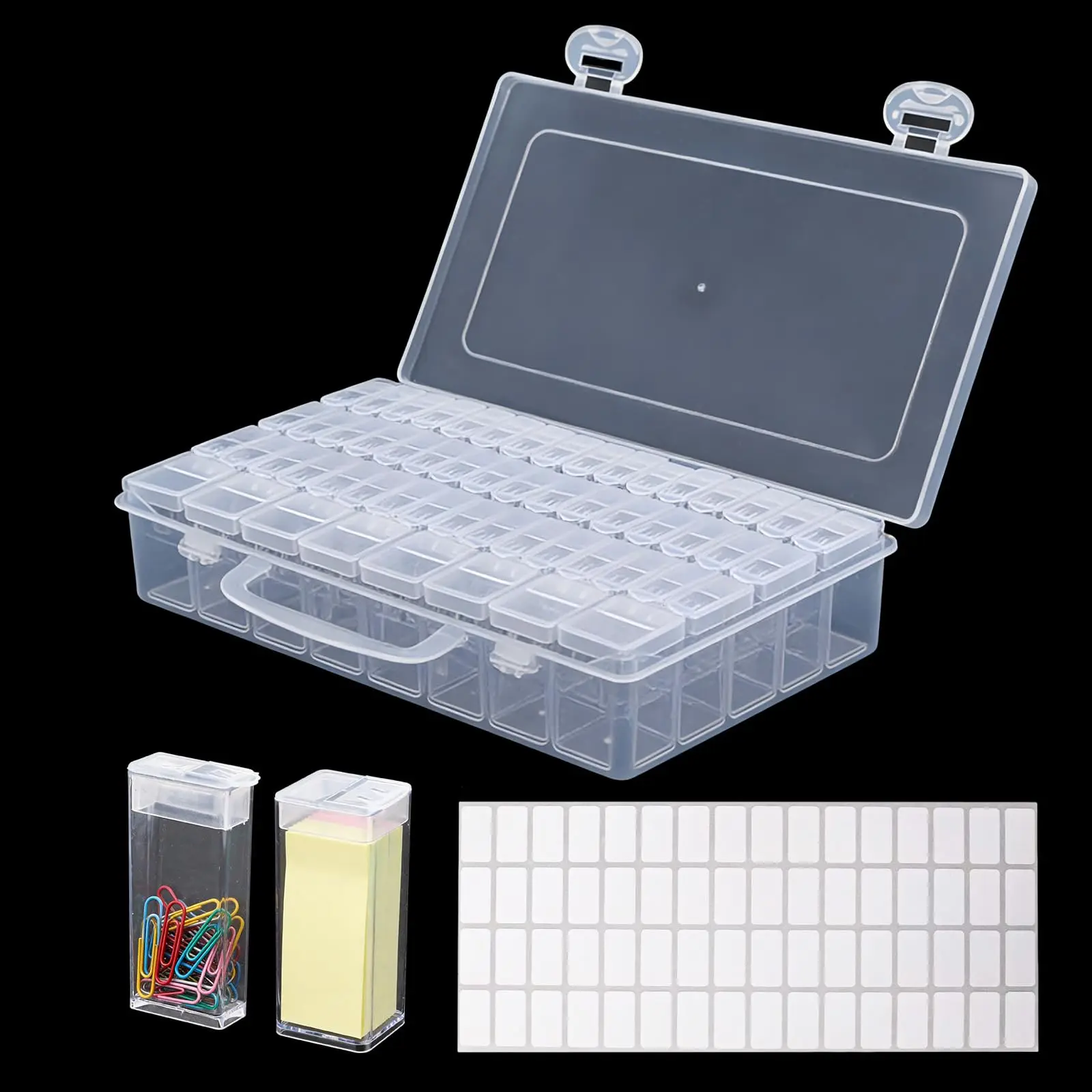 56/64-delige diamant schilderij opbergdozen, draagbare transparante diamantkunst organizer met deksels, kralen opbergdozen