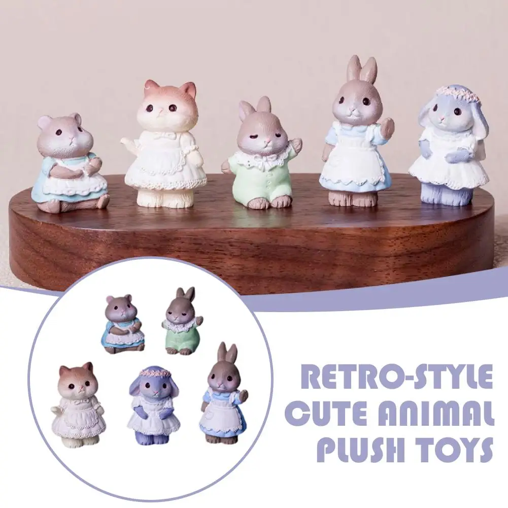 5/10PCS Retro Cottage Bunny Beeldjes Pasen Decor Leuke Schort Konijn Kat Muis Dier Hars Ambachtelijke Diy Tuin Ambachtelijke Accessoire