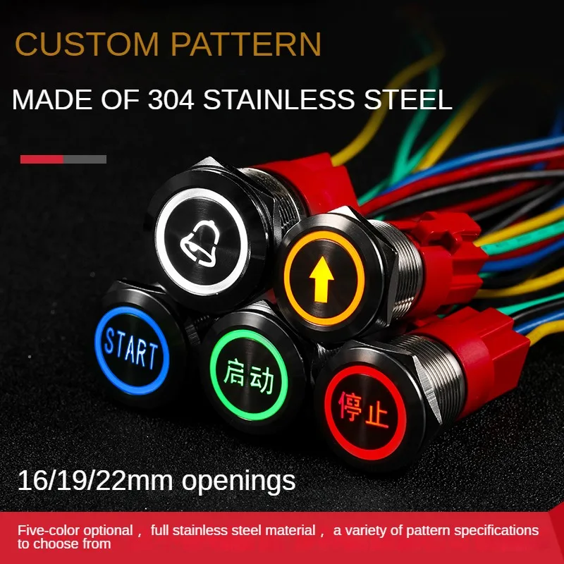 16/19/22Mm Custom Roestvrij Staal Metalen Drukknop Schakelaar 6/12/24/220V Met Waterdicht Voor Auto Boot Hoorn Ventilator On Off Stop