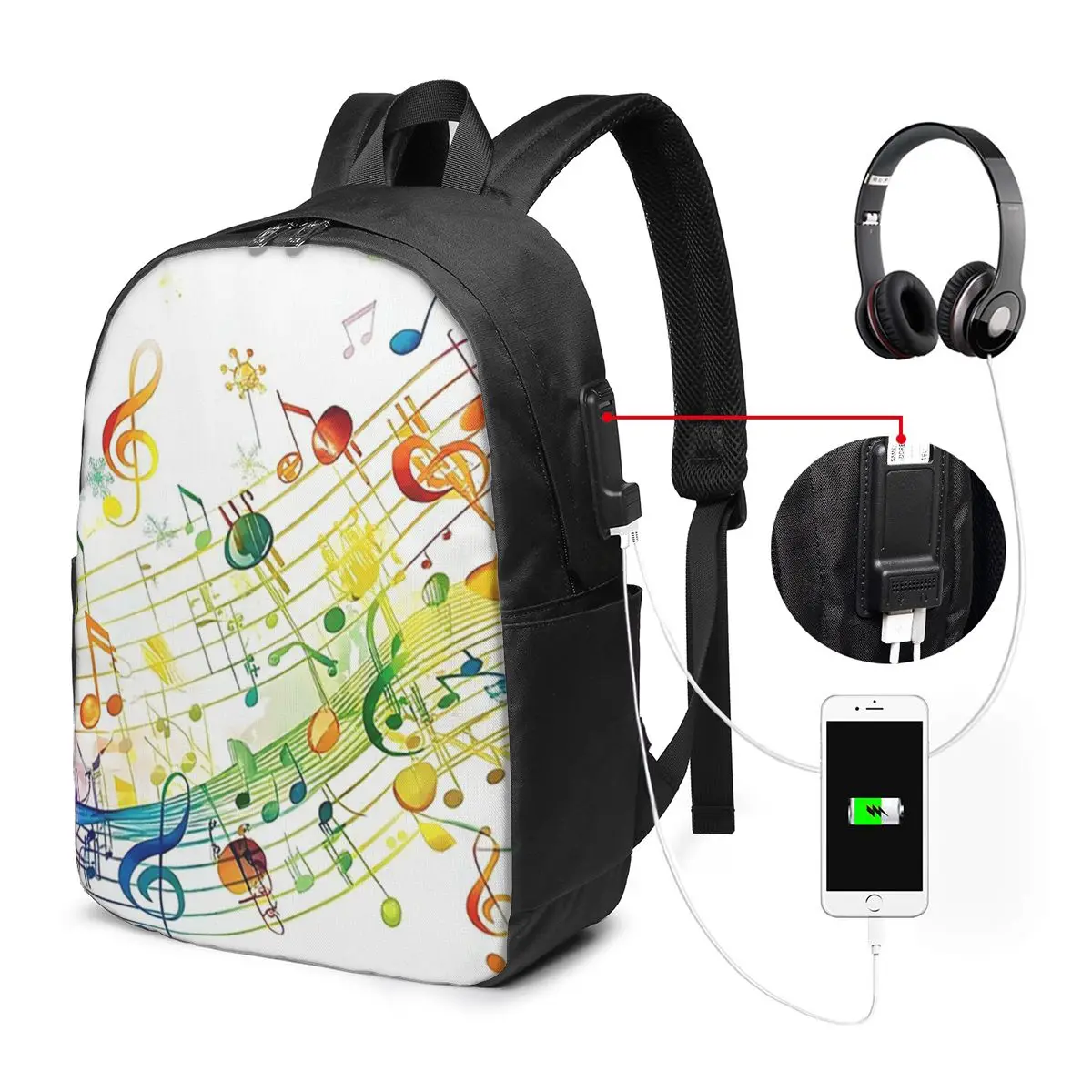 Abstracte pianotoetsen met muzieknoten Rugzak Reisnotebooktas Computer Student Schooltas Laptop Schoudertassen