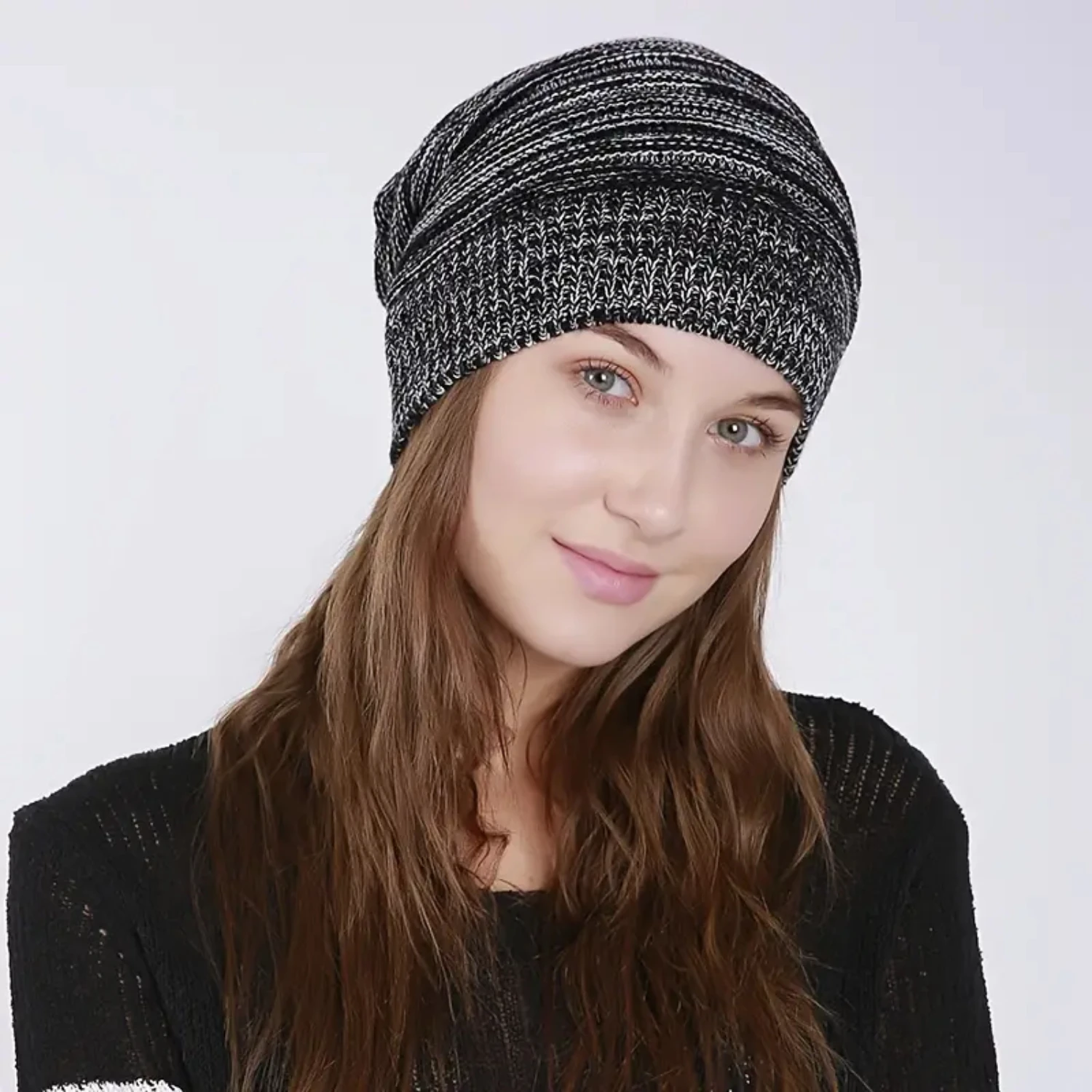 Warme dikke skimuts Dames wintermuts Dunne geplooide gemengde kleurenmuts Slouchy Skull gebreide muts