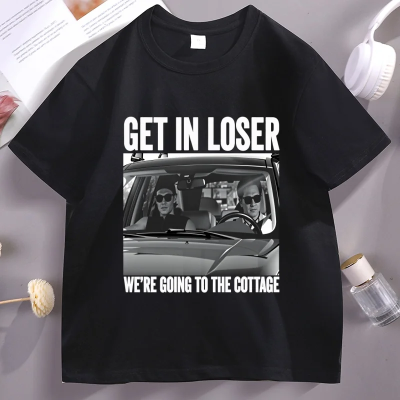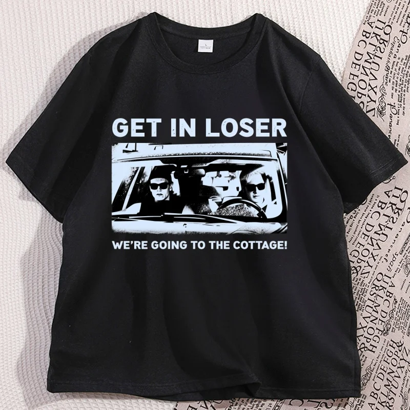 Get in Loser We're Going To The Cottage T-shirt voor mannen en vrouwen Grappige verwarmde grafische T-shirts Katoenen streetwear met korte mouwen