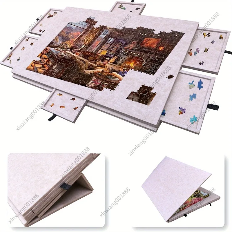 Puzzeltafelbord met beugel, stofkap, 6 laden, draagbare sorteerbak, 1000-delige puzzeltafel voor kinderen en volwassenen