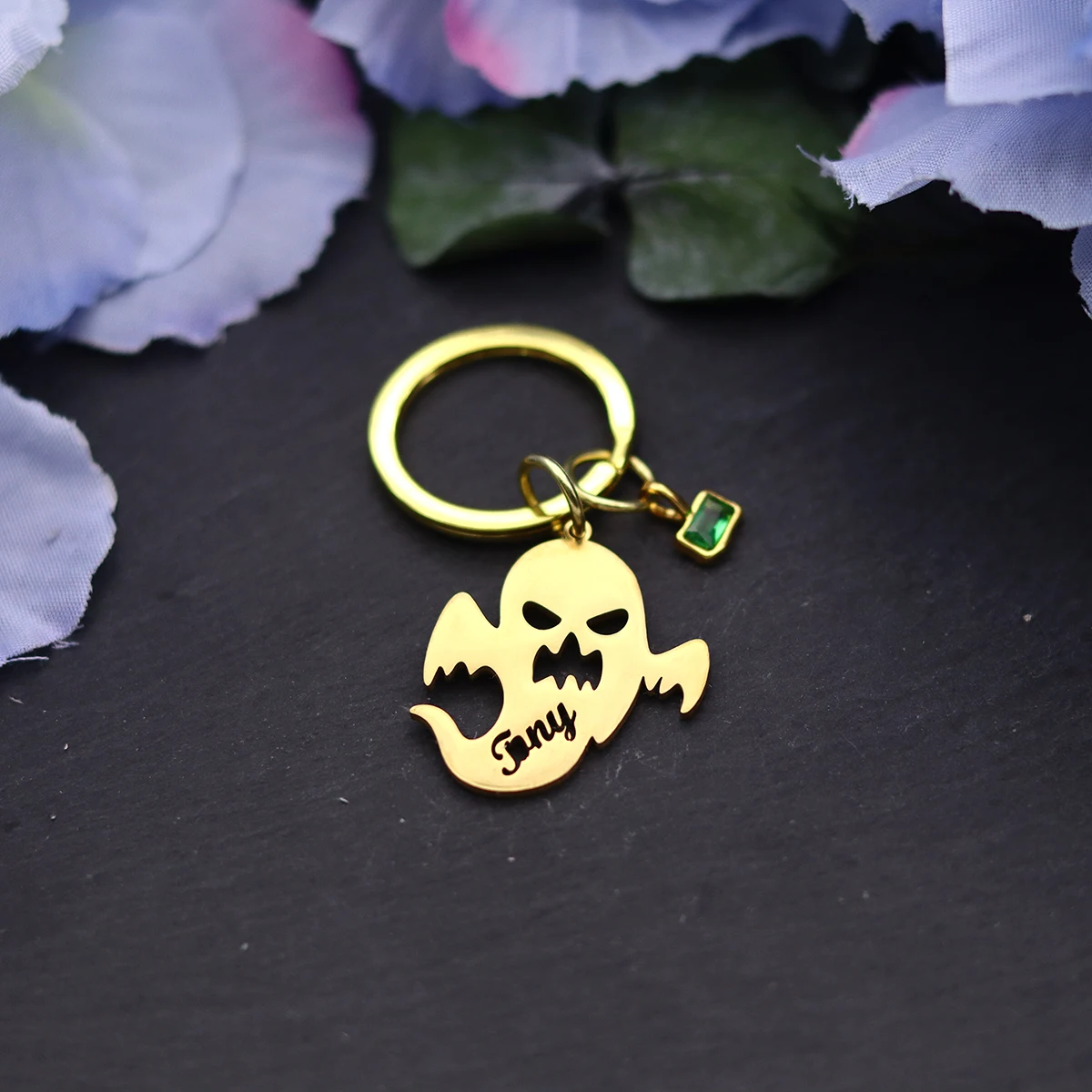 Chandler Hollow Skull Ghost sleutelhanger roestvrijstalen sleutelhanger met groene kristallen charme dagelijkse accessoires voor mannen en vrouwen