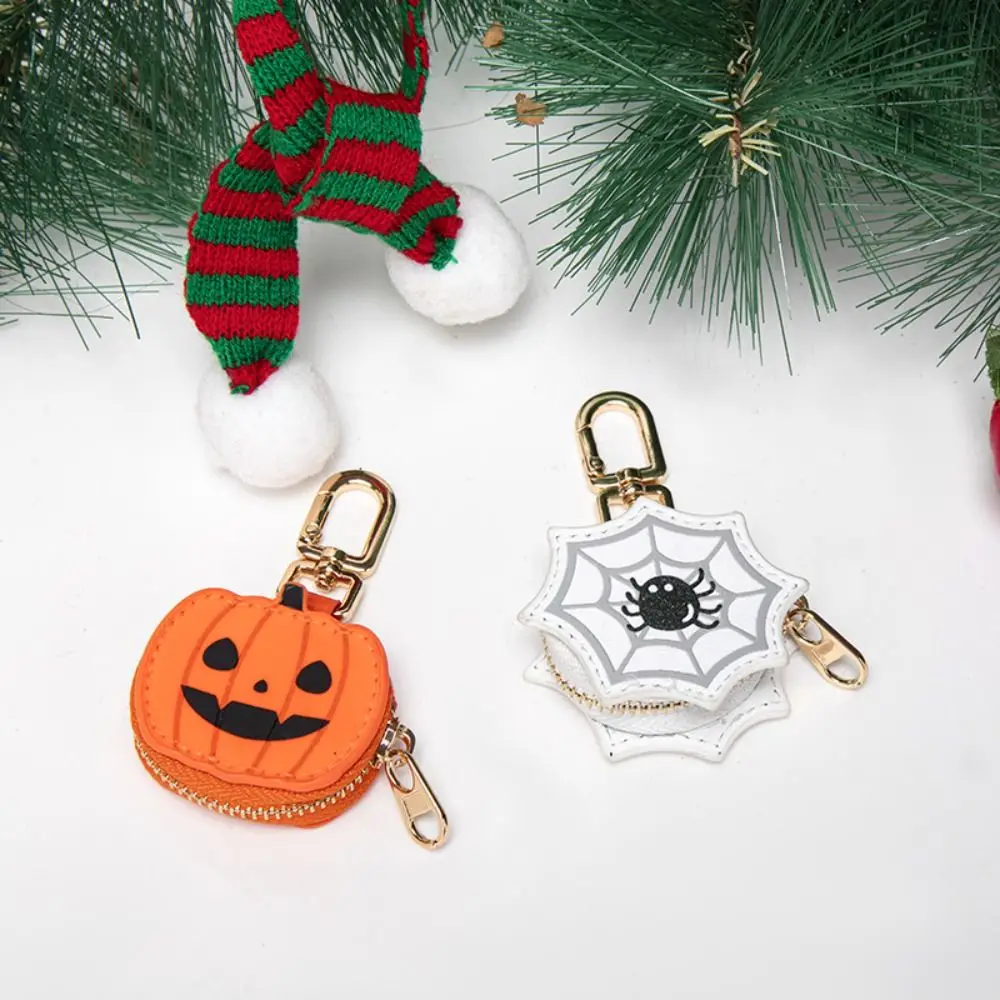 Mini schattige PU lederen sleutelhanger sneeuwvlok pompoen kerst hanger spook muntentas oordopjes tas cadeau