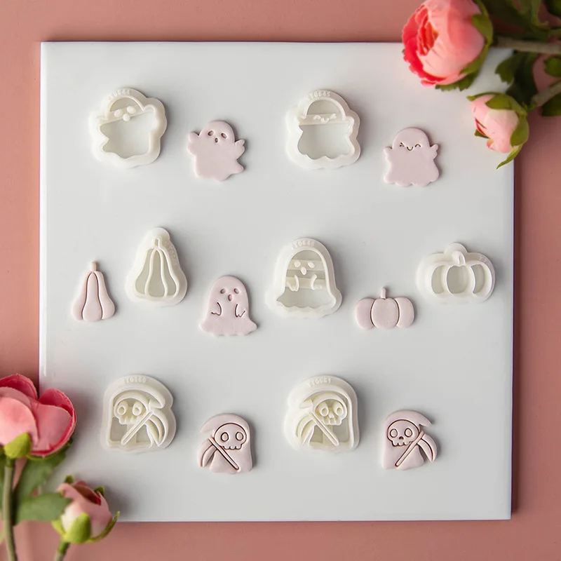 Halloween Cartoon serie Polymeer Klei Snijders DIY Leuke Ghost Zacht Aardewerk Klei Oorbel Sieraden Hanger Maken Snijden Stempel Schimmel