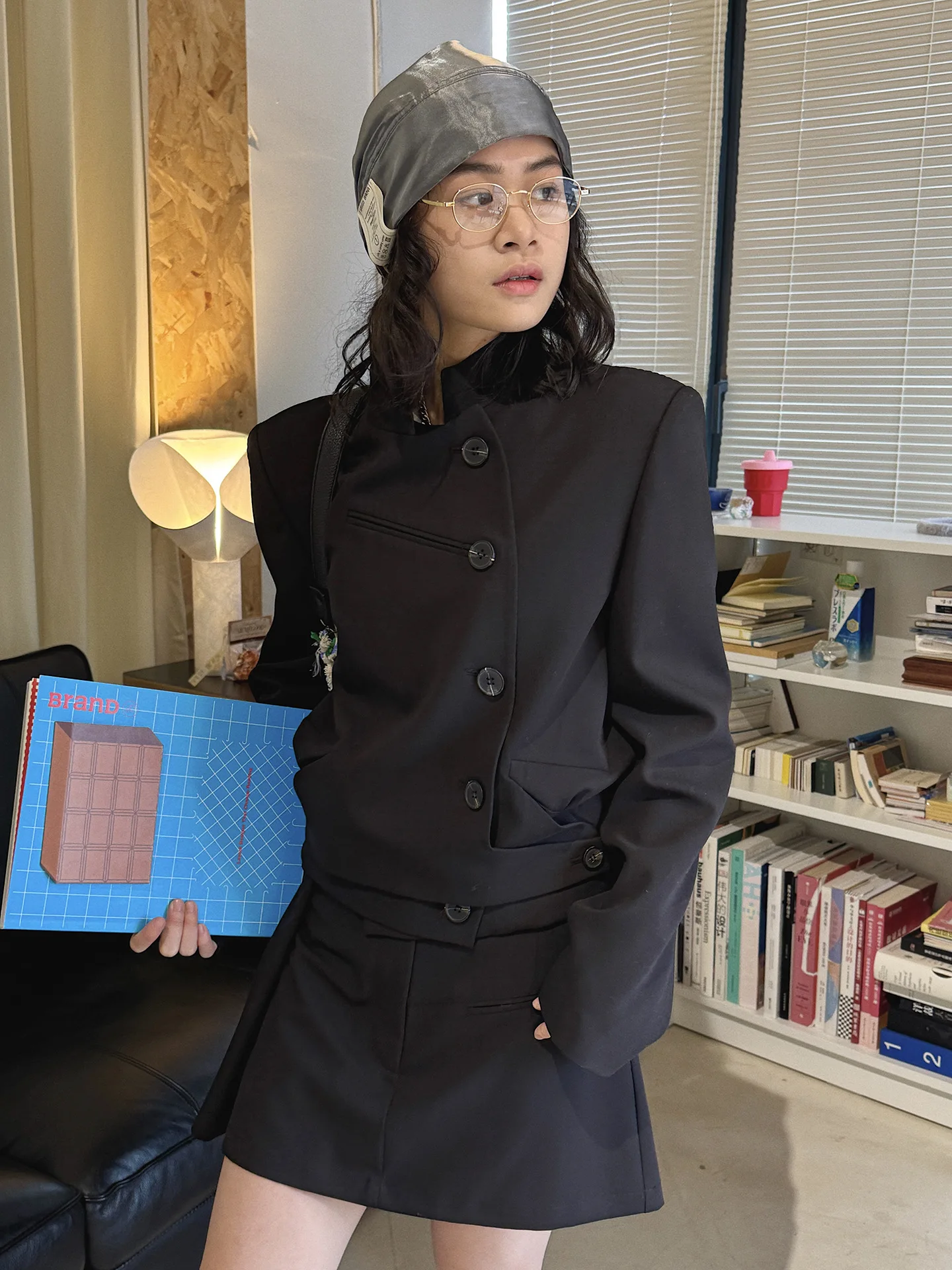 SEIZPROJECTS Damesjas voor lente-zomer, nieuw Parijse boetiek-stijl ontwerp, met opstaande kraag, asymmetrische knoopsluiting, kort model