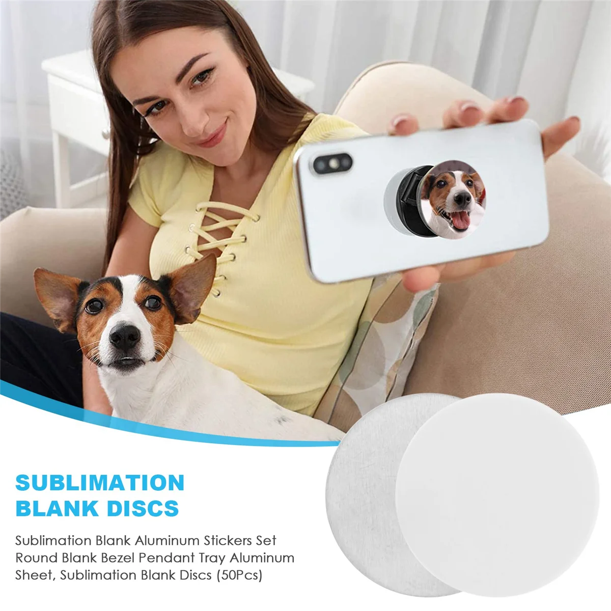 ABLG sublimatie blanco aluminium stickers set ronde blanco bezel hanger lade aluminium plaat, sublimatie blanco schijven (50 stuks)