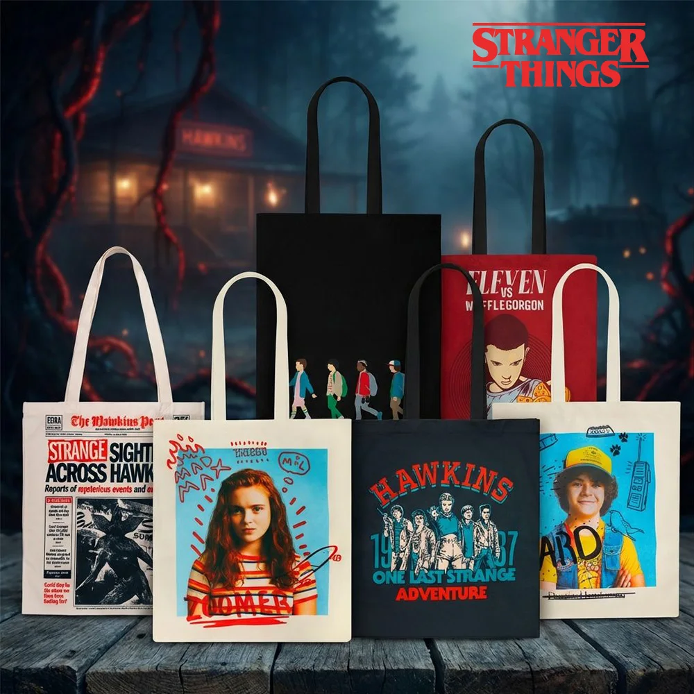 1PC Stranger Things officieel gelicentieerde stoffen draagtas, opbergtas, dubbelzijdig bedrukt, grote capaciteit, casual schouderhandtas