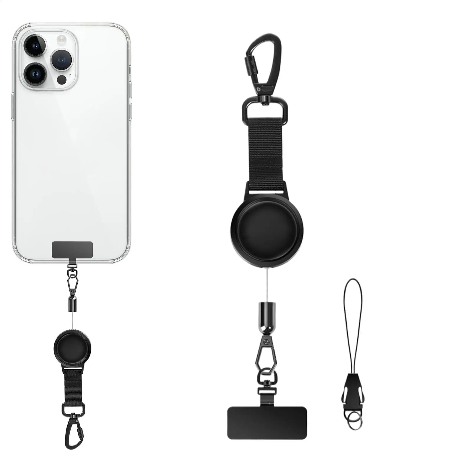 Intrekbare telefoonkoord Anti-diefstal beveiligingsband Telefoonkoord met vergrendelbare karabijnhaak en 360 graden draaibare haak voor buiten