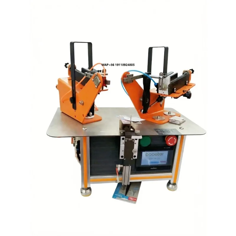 Automatische etiketteermachine voor textiel, kleding en kledingstukken met twee tags en luspennen.