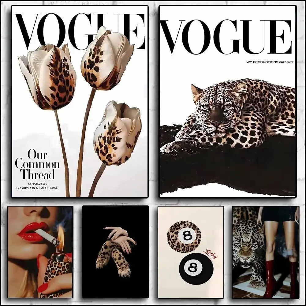 Luipaard en roze mode vrouwen en luipaard muurkunst poster zelfklevende kunst waterdicht papier sticker koffiehuis bar kamer muur