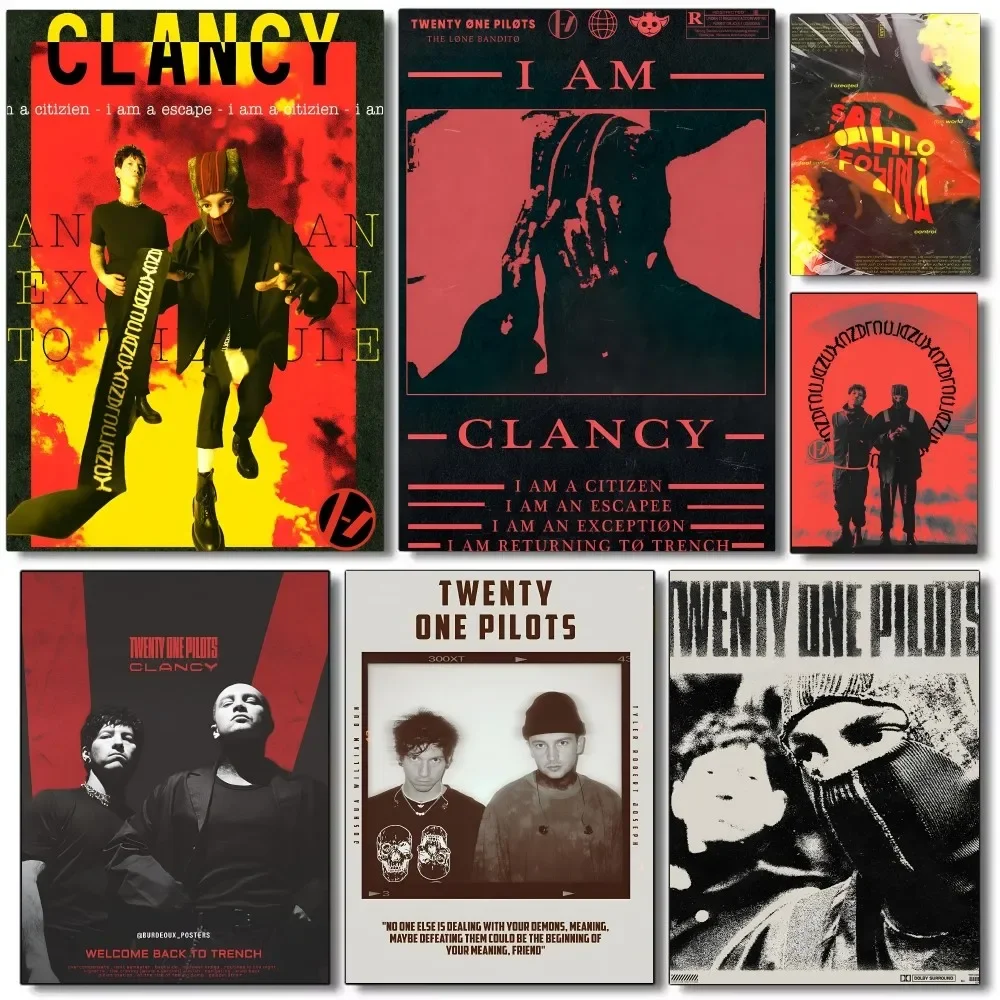 T-Twenty One Pilots Band Poster zelfklevende kunst waterdichte papieren sticker koffiehuis bar kamer wanddecoratie