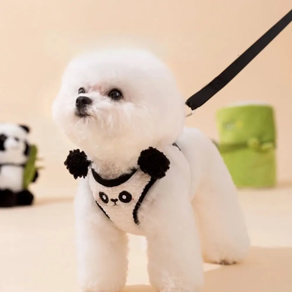 Lamvelvet hondenharnas en riemset, verstelbaar vestmodel, hondenwandeltouw, warme cartoon design, borsttuigset voor huisdieren