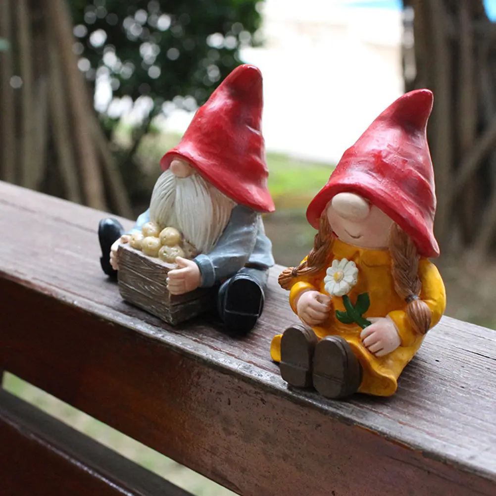 2 stuks paar gnome decors hars ambachtelijke buiten tuin standbeeld scène versieringen decoratieve tuin hars ornamenten paar gnome decors