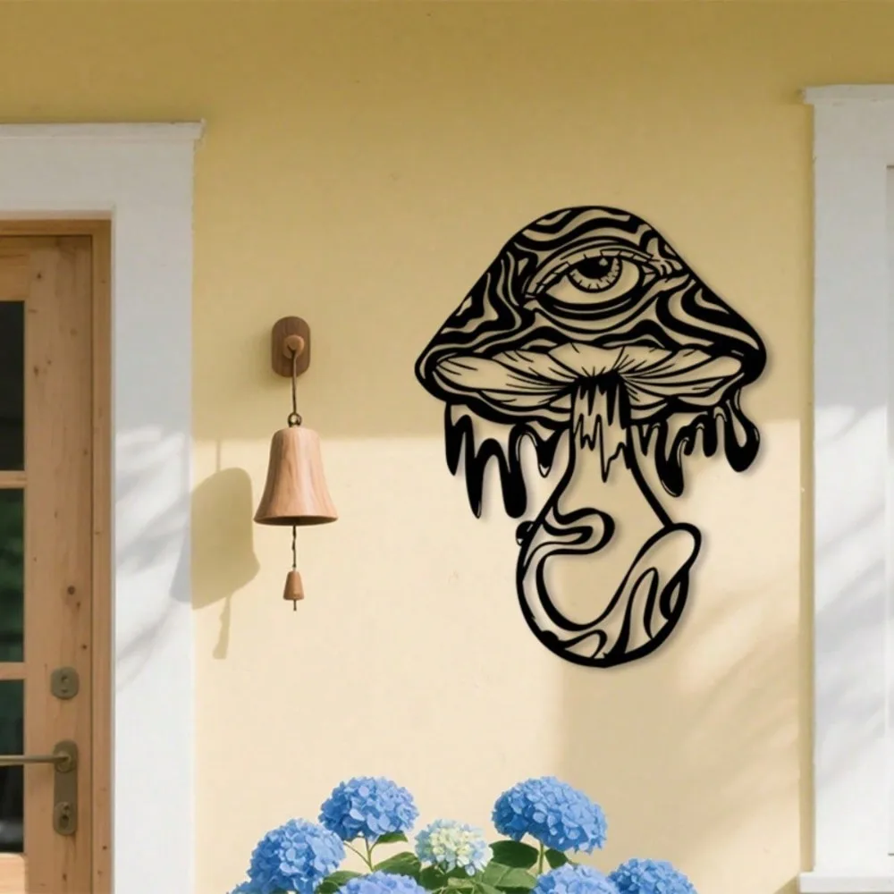 Iron Mushroom Wall Art - Grappige sprookjesachtige tuindecoratie, betoverde bos buiten metalen bord, uniek cadeau voor mycoloog