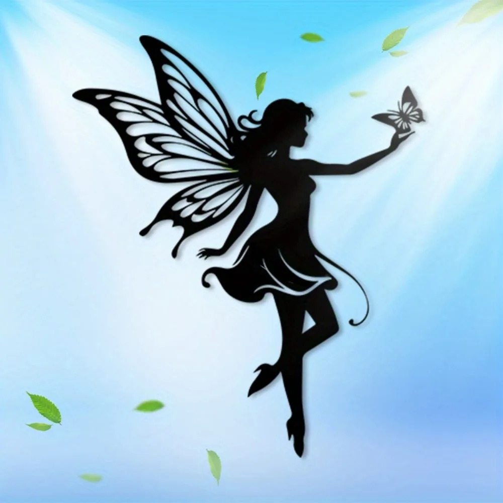 Grappige sprookjesachtige metalen wanddecoratie voor de tuin, 2D plat ijzeren ontwerp, kerstcadeau voor tuinliefhebbers, wanddecoratie voor kantoorruimtes