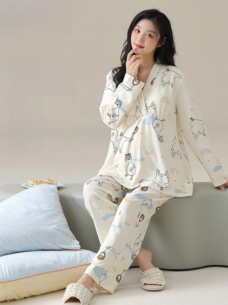 Zwangerschapsnachtkleding van puur katoen met borstkussen Postpartum Verpleeghuiskleding Lente Herfst Seizoensgebonden Comfortabel huispak