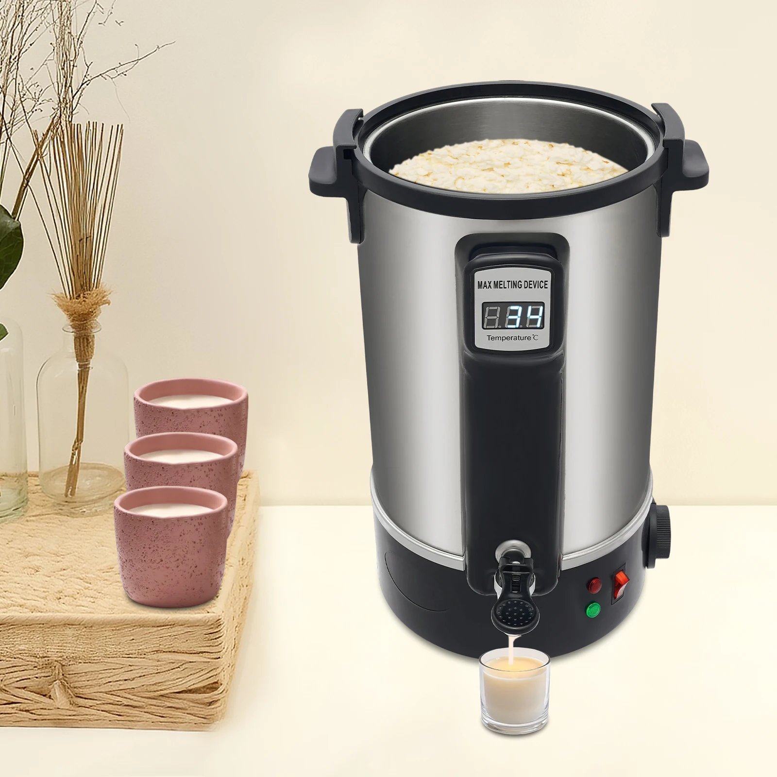 1100W kaarswasmelter 8,45Qt, 86-212 ° Digitale temperatuurregeling, roestvrijstalen smeltpot met kraan voor soja, paraffine en bijenwas