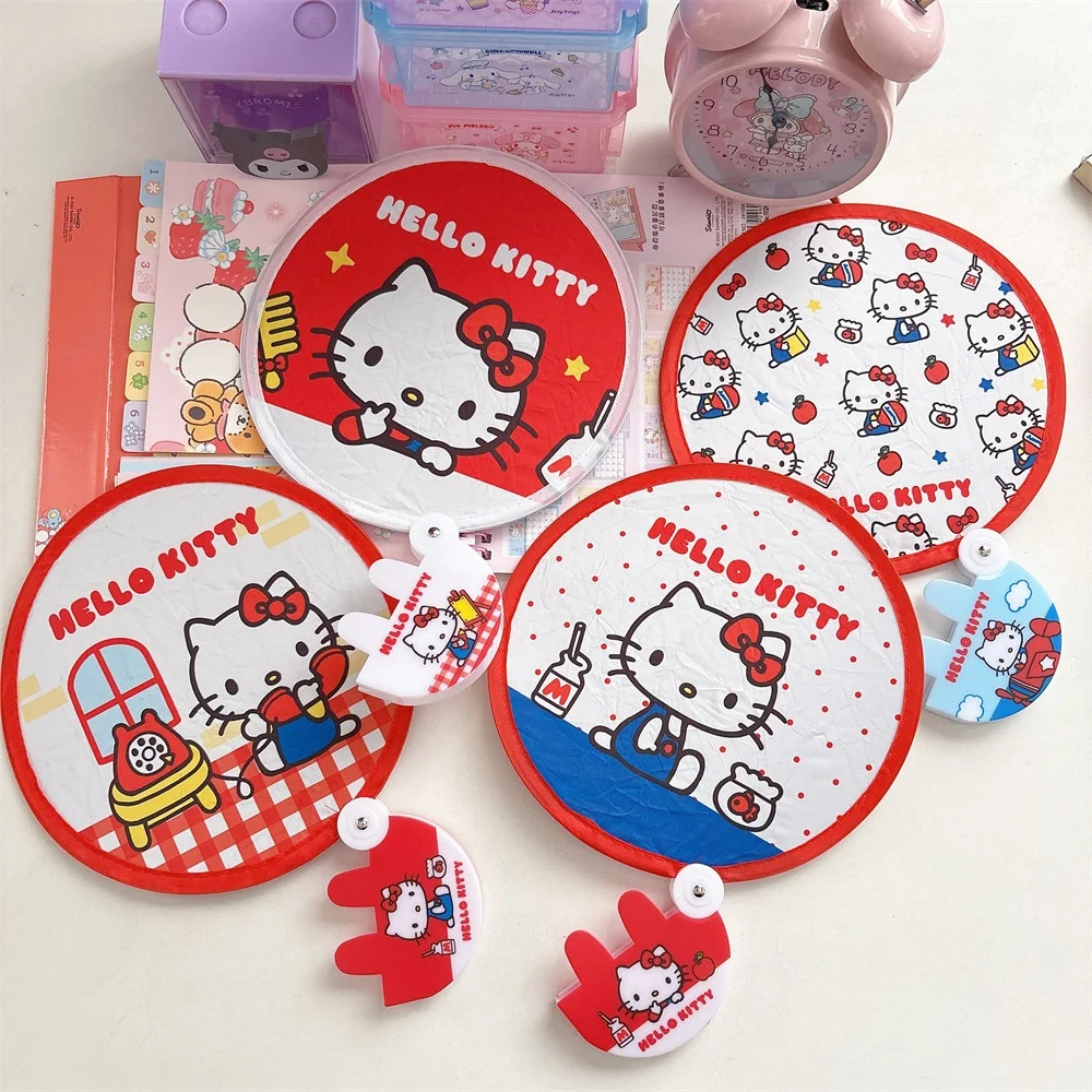 Echte Sanrio Hello Kitty zomerzonweringventilatoren Kawaii Cartoon draagbare opvouwbare reflecterende handventilatoren Girly Photo Fill Light Fan