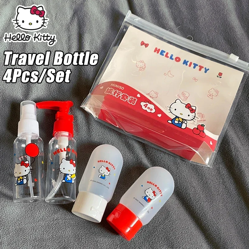 Schattige Hello Kitty spuitfles 4-delige set reisuitrusting Cartoon-stijl Draagbare praktische herbruikbare reisfles